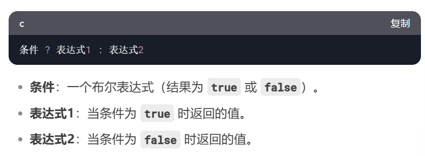 根据条件成立与否,选择返回两个不同表达式中的一个值。