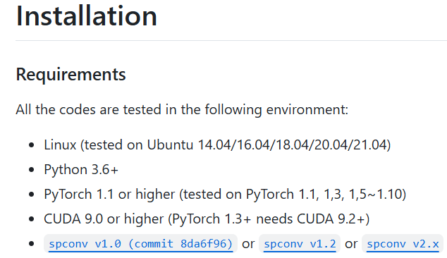 安好之后就可以去安装OpenPcdet,下面是OpenPcdet的安装要求,我们还需要spconv