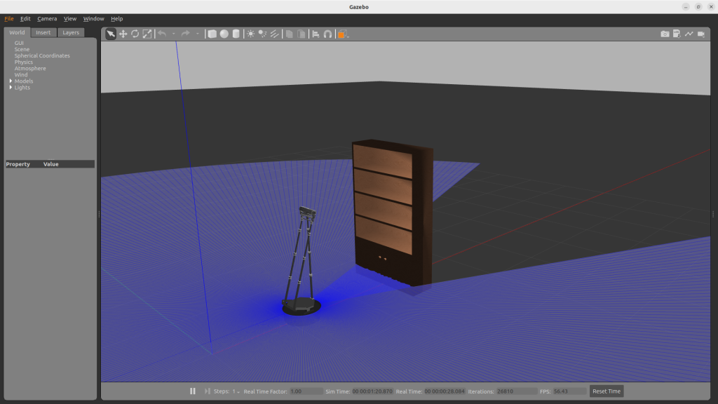 打开仿真机器人可以发现机器人正在缓缓向前走